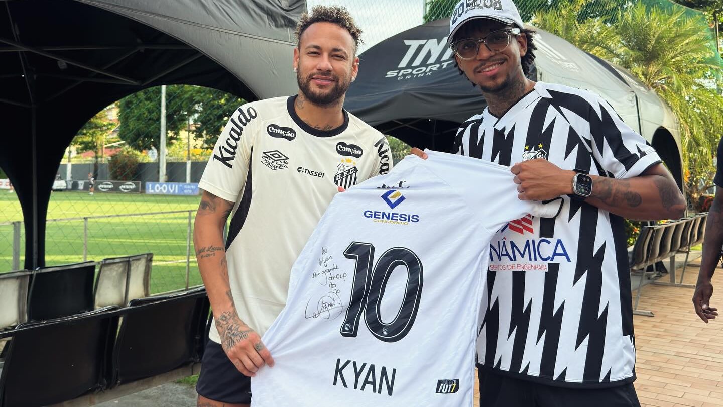 Após a oficialização, Neymar também comentou a chegada do rapper ao Fut7 do Santos. O camisa 10 do Peixe assinou posteriormente a camisa de Kyan, disse que pretende acompanhar as partidas da equipe e entrou na brincadeira ao lembrar que antes era cobrado pelo artista nos campos, mas agora será ele quem vai assistir Kyan em ação no Fut7.